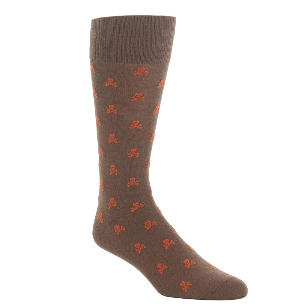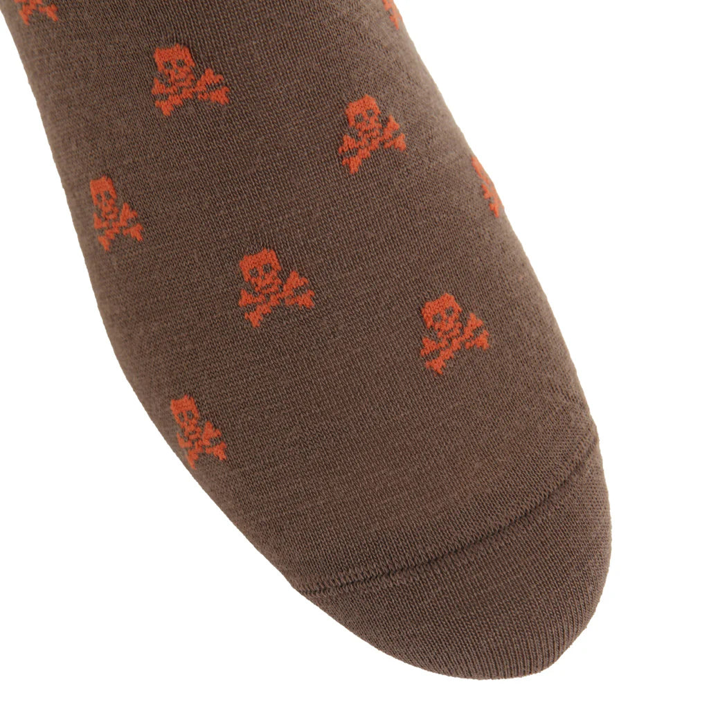 Dapper Classics Skulls Cotton Sock Linked Toe Over-The-Calf in Coffee