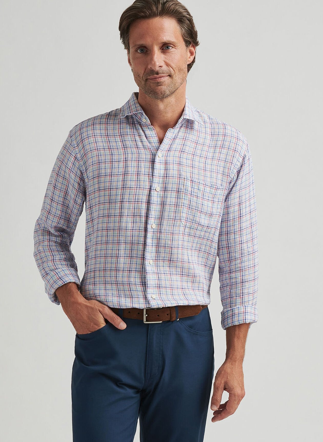 Peter Millar Beachcast Linen Sport Shirt in Atlantic Blue