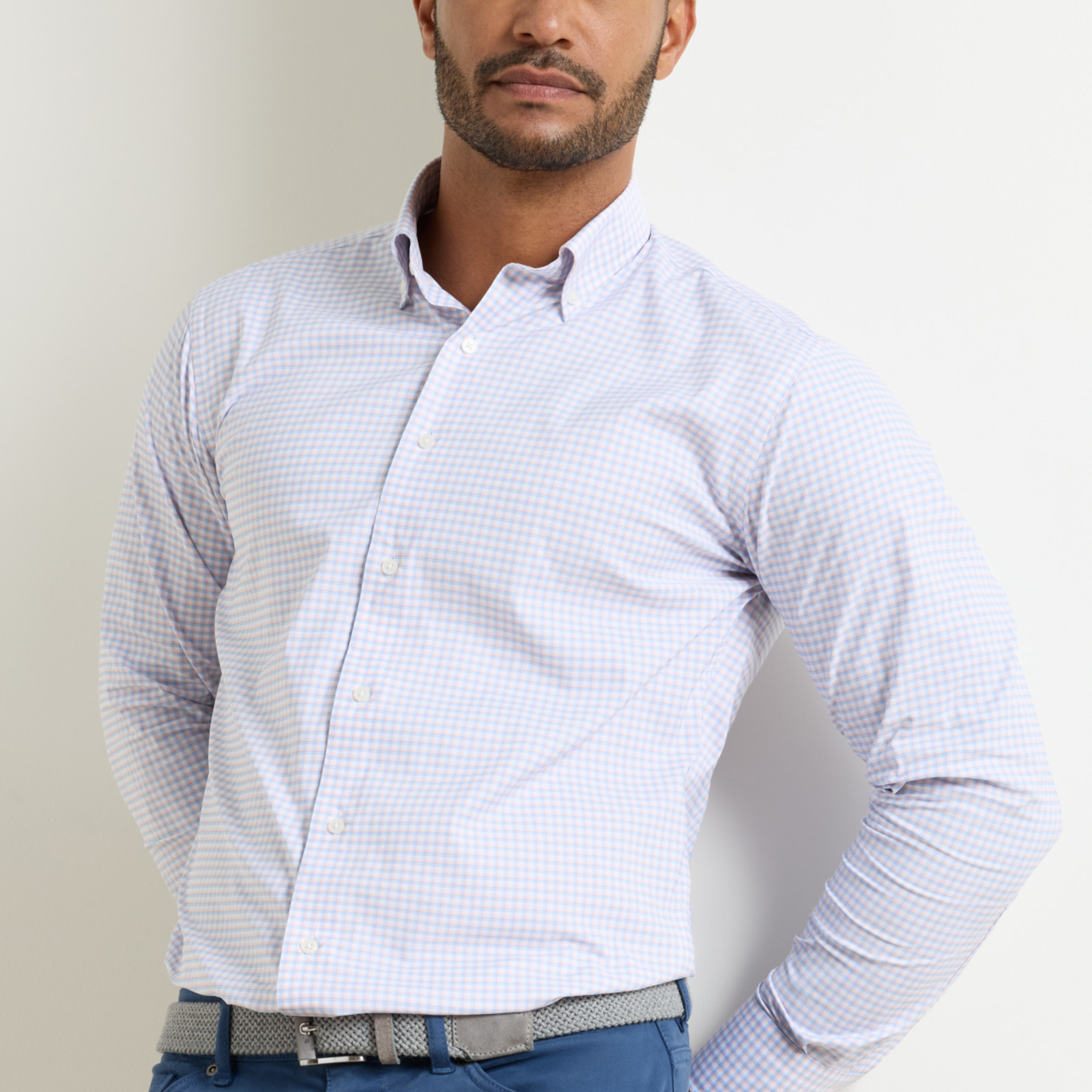 This modern essential has the classic look of a twill shirt in a lightweight, easy-care performance fabric that offers two-way stretch, wicking and UPF 50+ sun protection. Finished with a button-down collar.