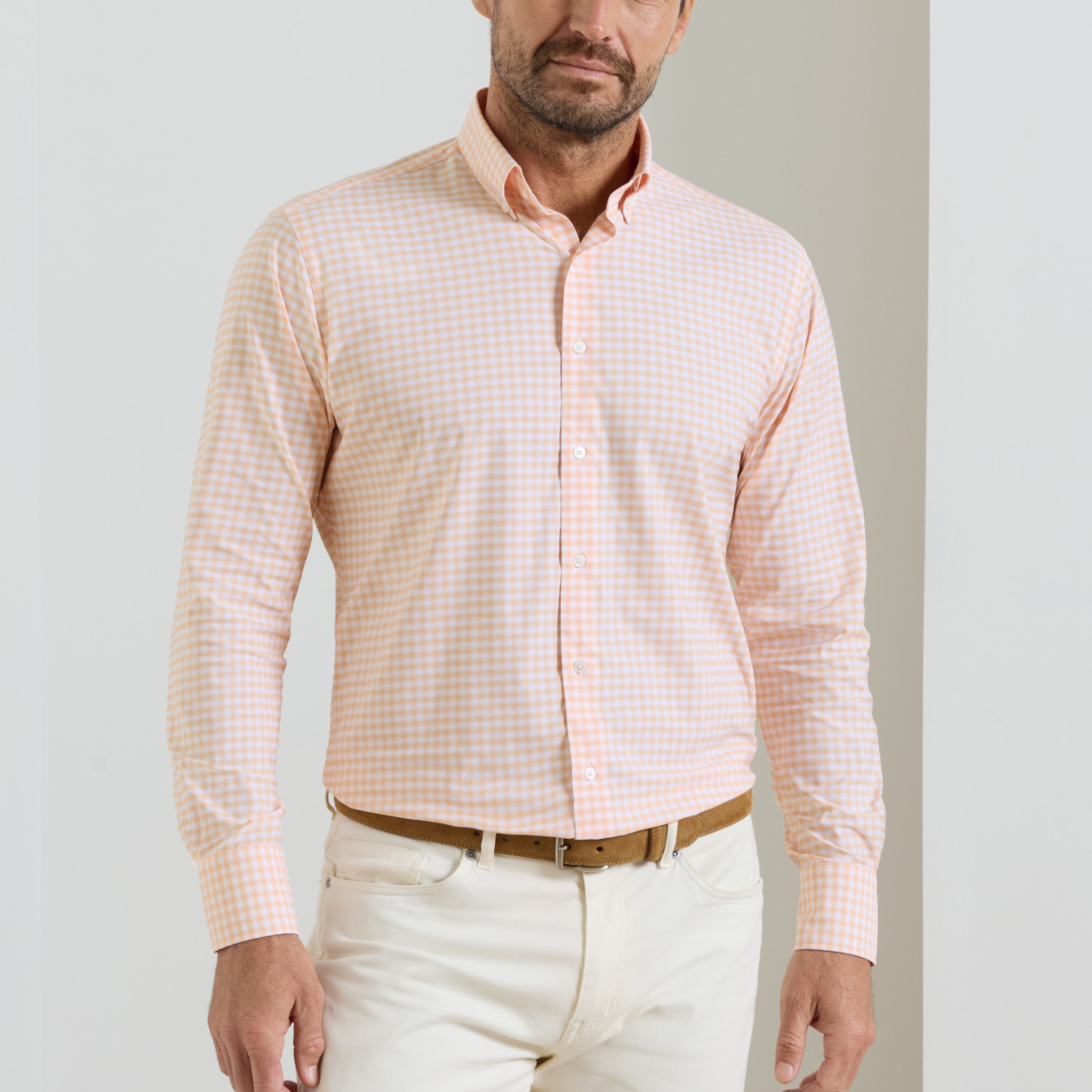 Peter Millar Lewis Performance Twill Sport Shirt in Cosmic Peach