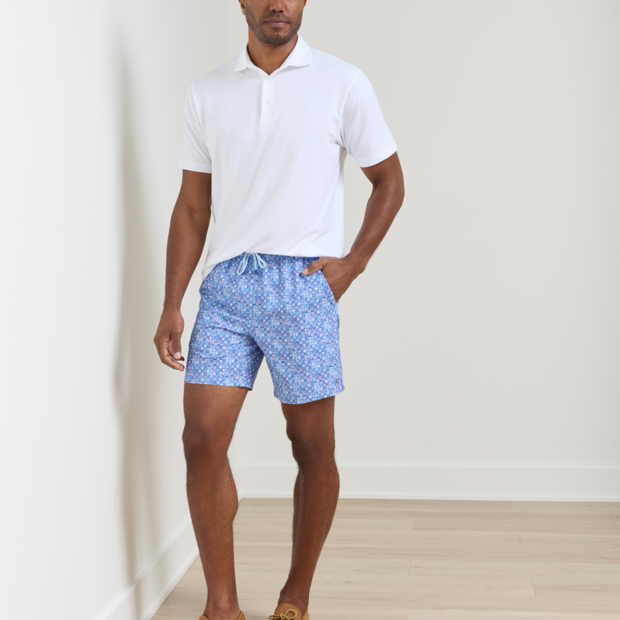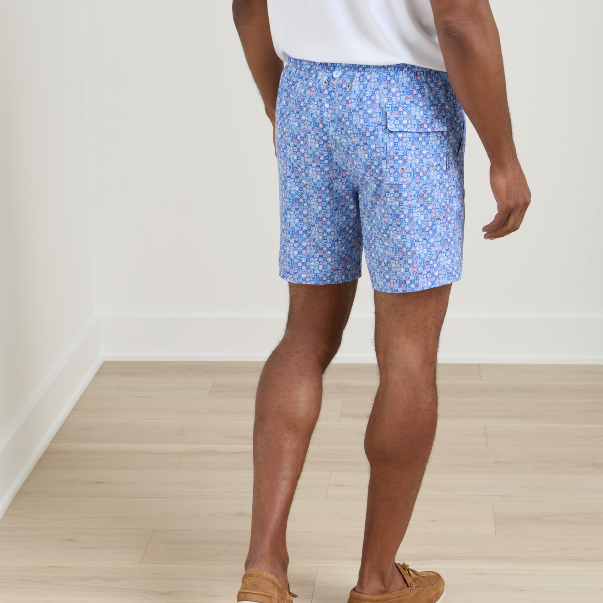 Peter Millar Santorini Tiles Swim Trunk in Cottage Blue