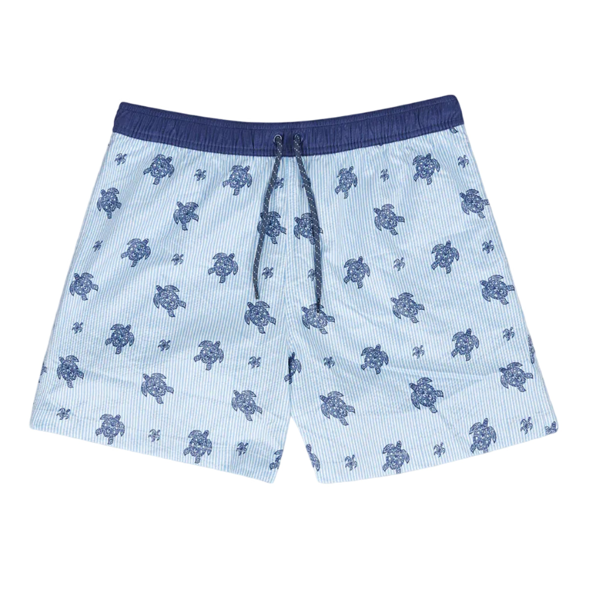 Turtleson Channel Seersucker Swim Short in White/Azure