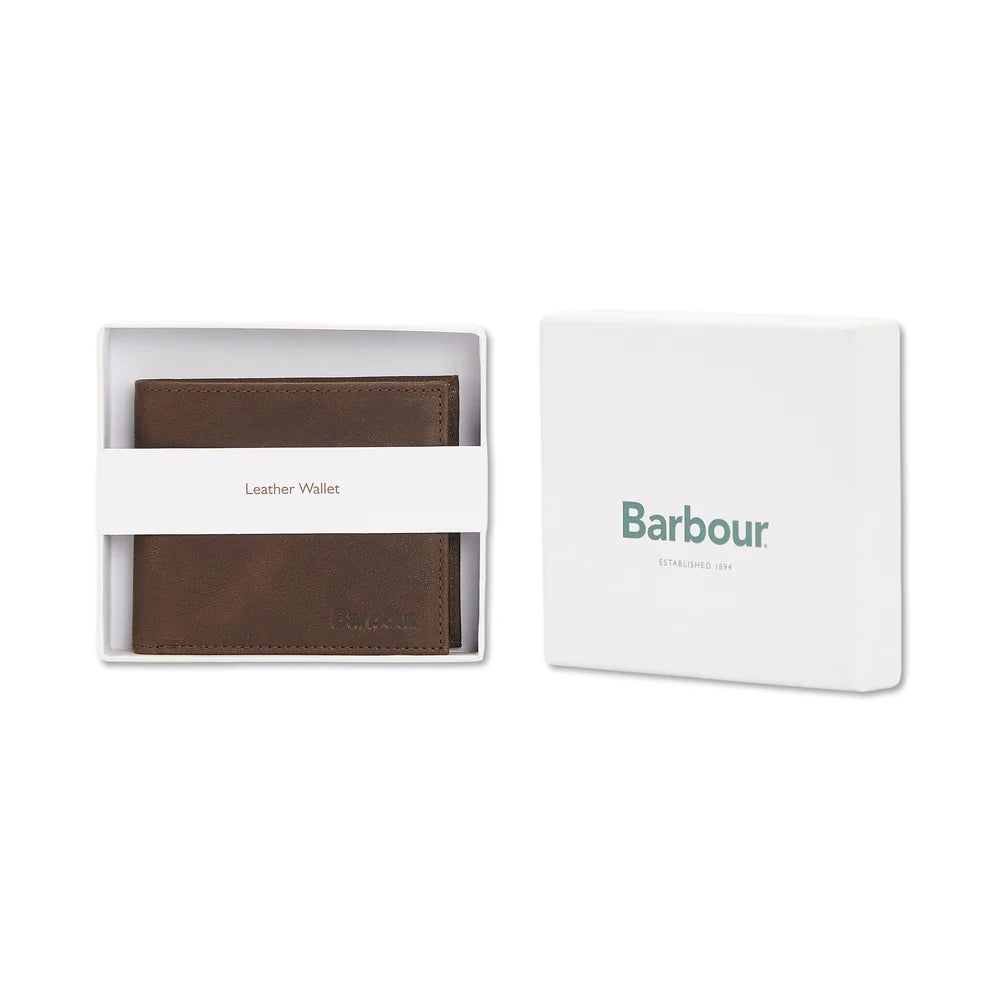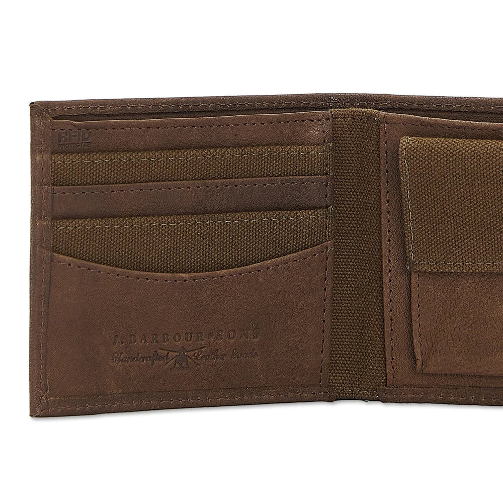 The Barbour Padbury Billfold  is made with natural leather and is canvas trimmed.  It features multiple card slots and a coin pocket for added security.