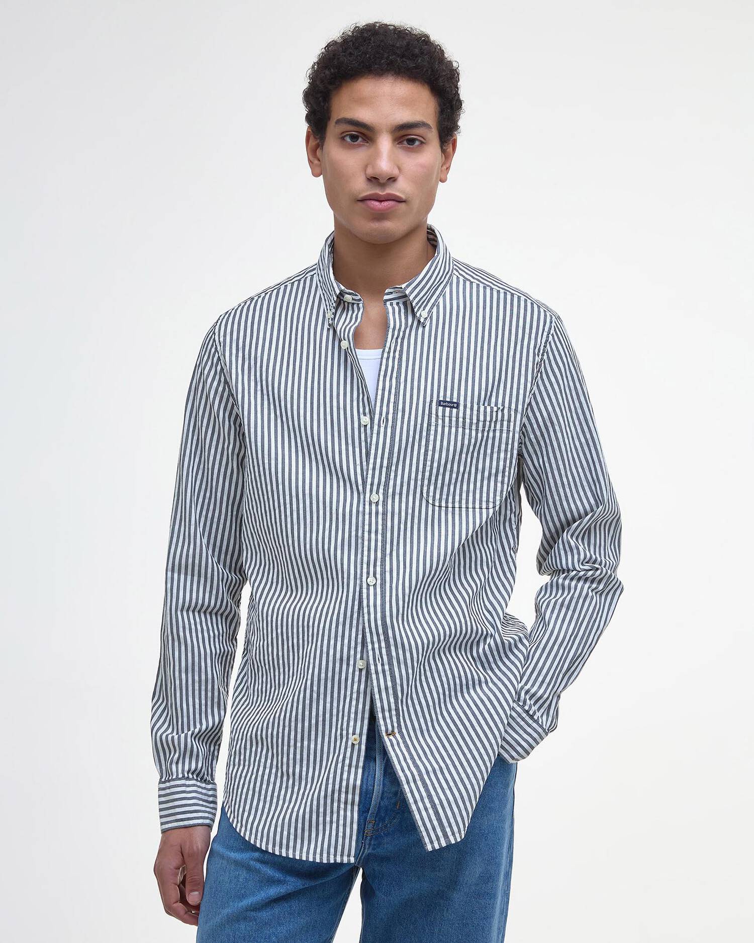 Barbour and Shield branded label positioned to top left of chest pocket.