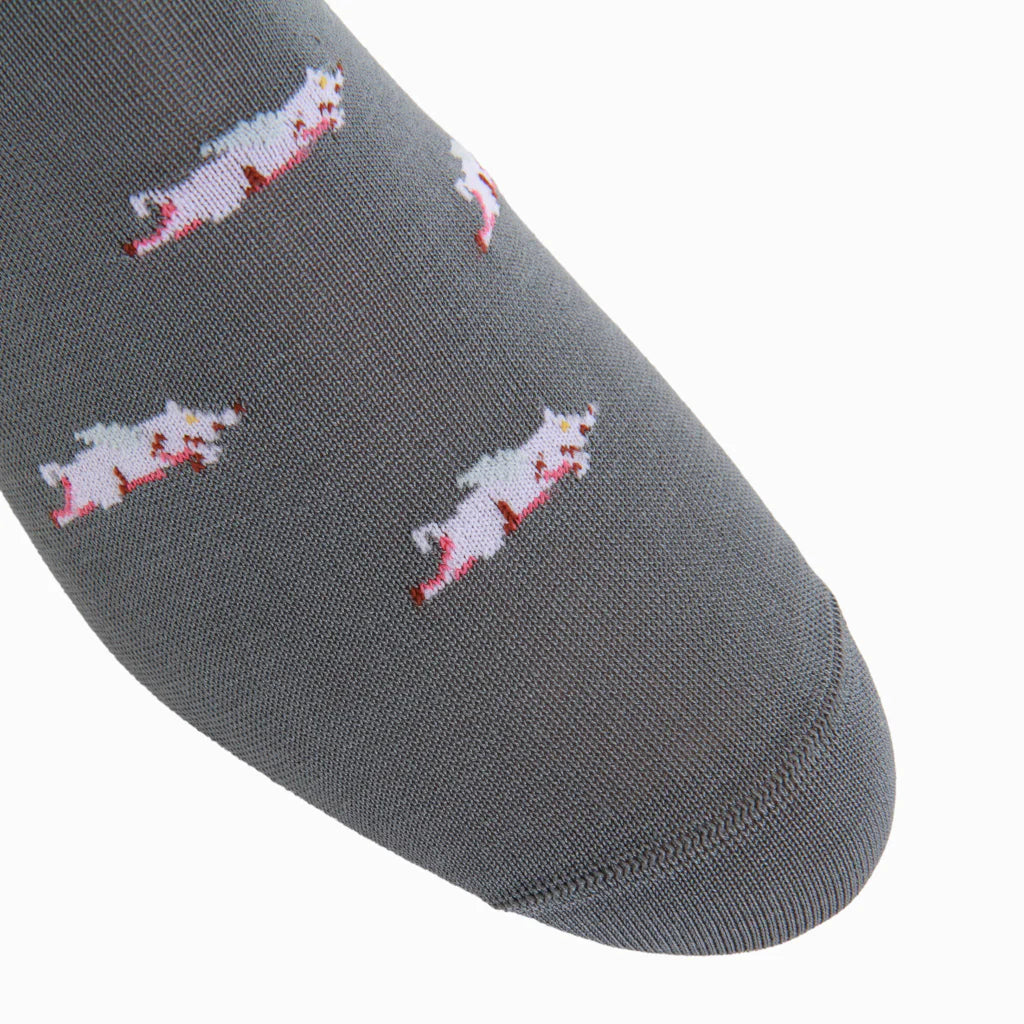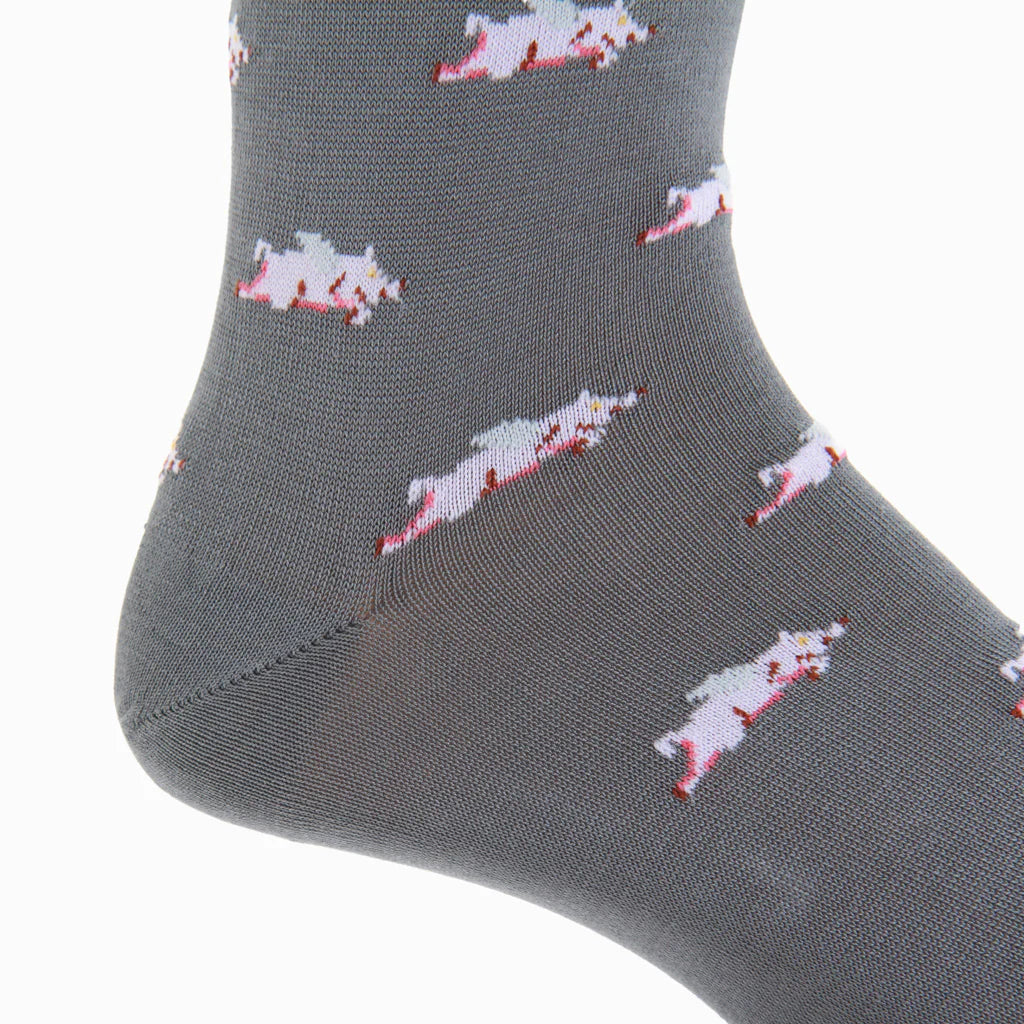 Dapper Classics Flying Pigs Cotton Sock Linked Toe Over-The-Calf in Steel Grey