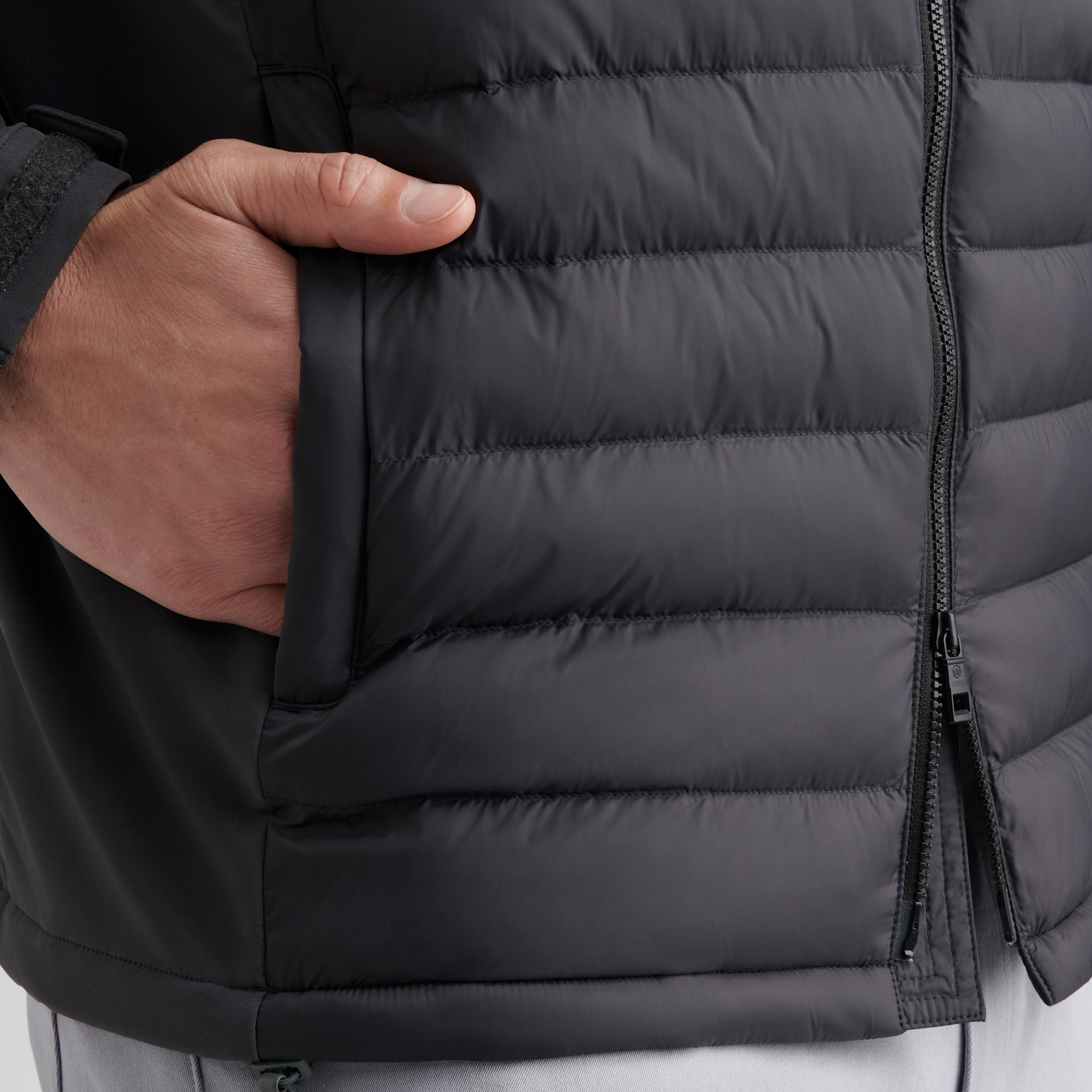 An essential performance layer constructed with loose fill channel insulation, the Apex Hybrid Hoodie offers warmth without weighing you down and water-resistant protection in a sleek and quiet design. Stretch fleece-lined sleeves allow for mobility and just the right amount of warmth.