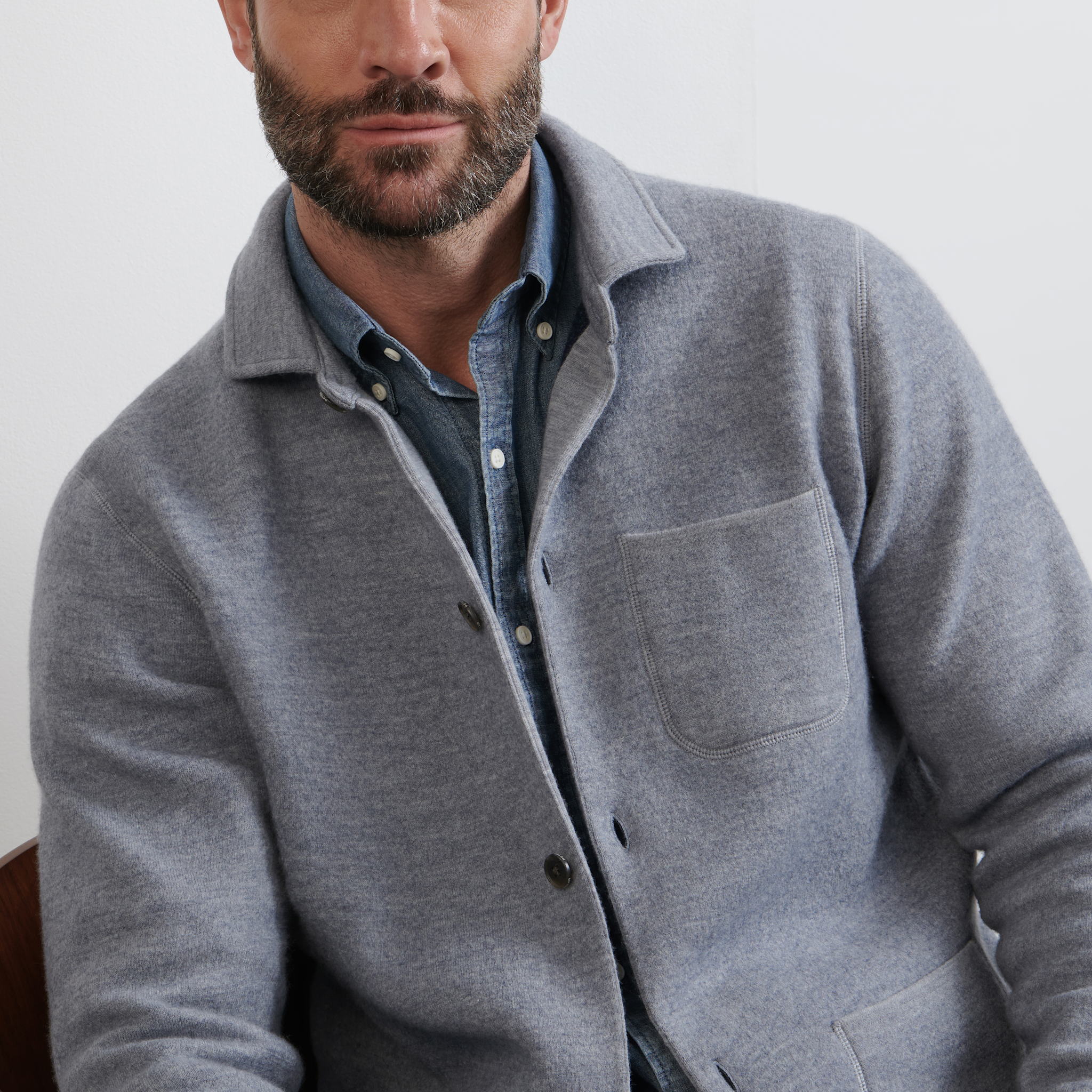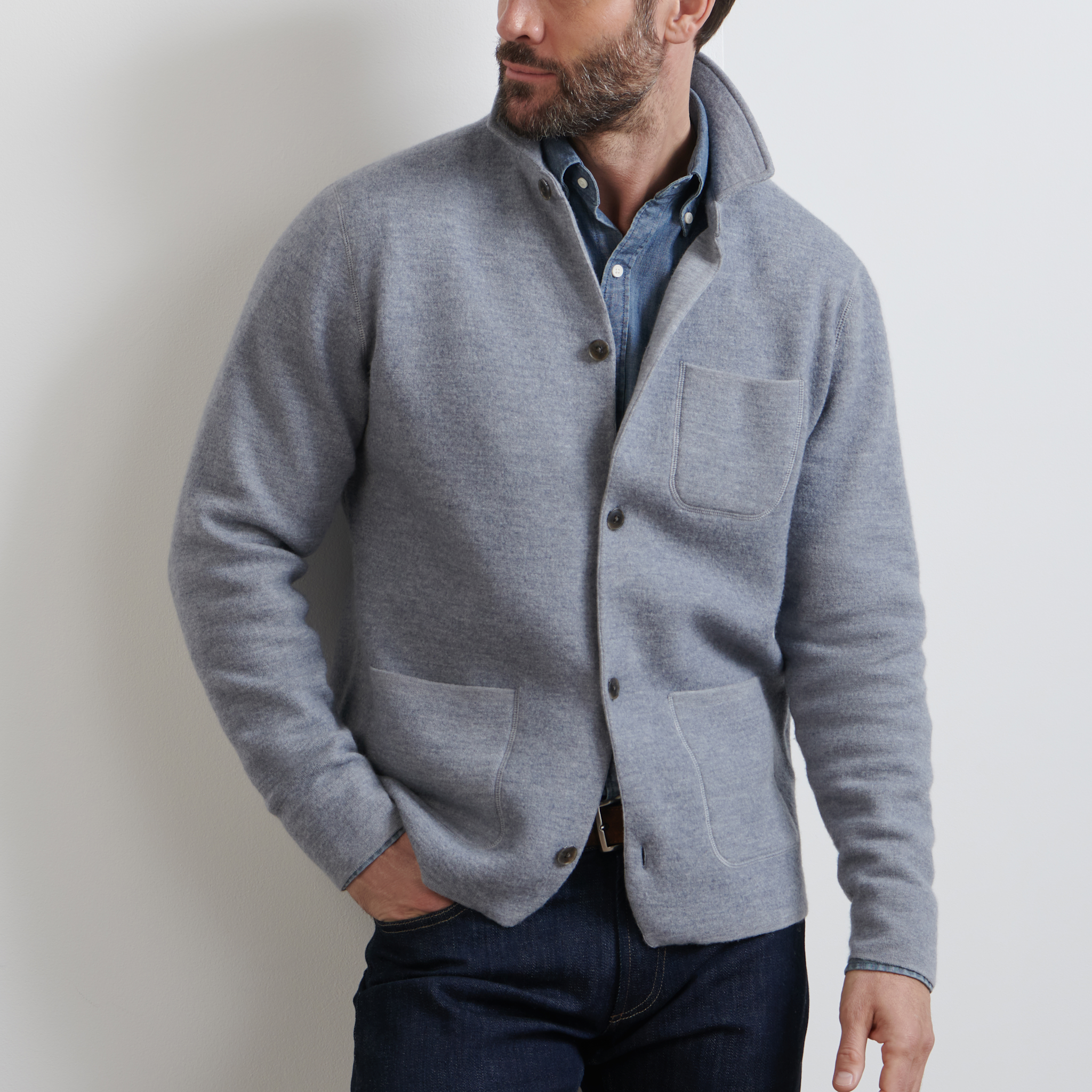 The unofficial uniform of the Peter Millar man, our newest seasonal interpretation of the classic chore coat is a brushed merino wool knit for softness and mobility. Casual patch pockets and exposed seams provide an everyday sensibility perfect for week or weekend wear.