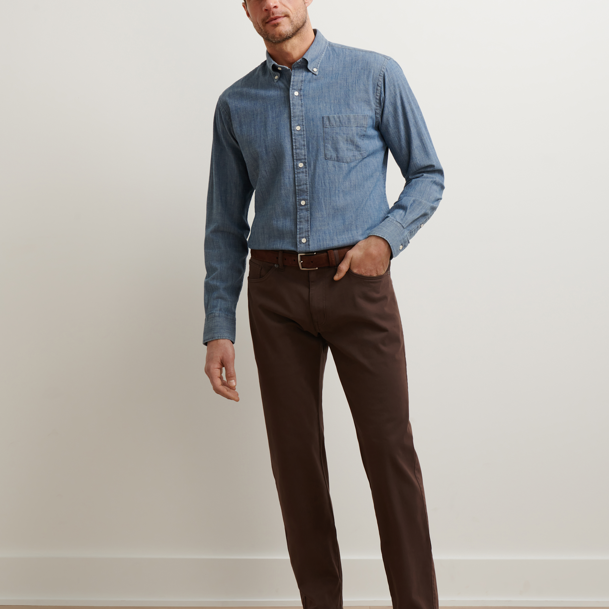 Casual yet sophisticated, and versatile enough to pair with almost anything, our Sateen five-pockets have been a tried-and-true design season after season. A new fabric this season is as soft and comfortable as ever, with a more lightweight feel and improved shape retention. The all-new comfort waistband adds an easy all-day wearing experience. Offered in a host of new colors and all the essential neutrals.