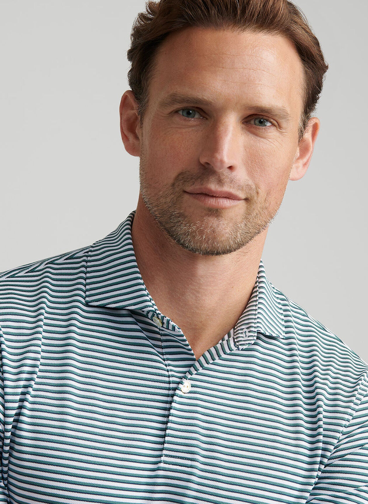 Peter Millar Tempo Performance Jersey Polo in White/Sherwood