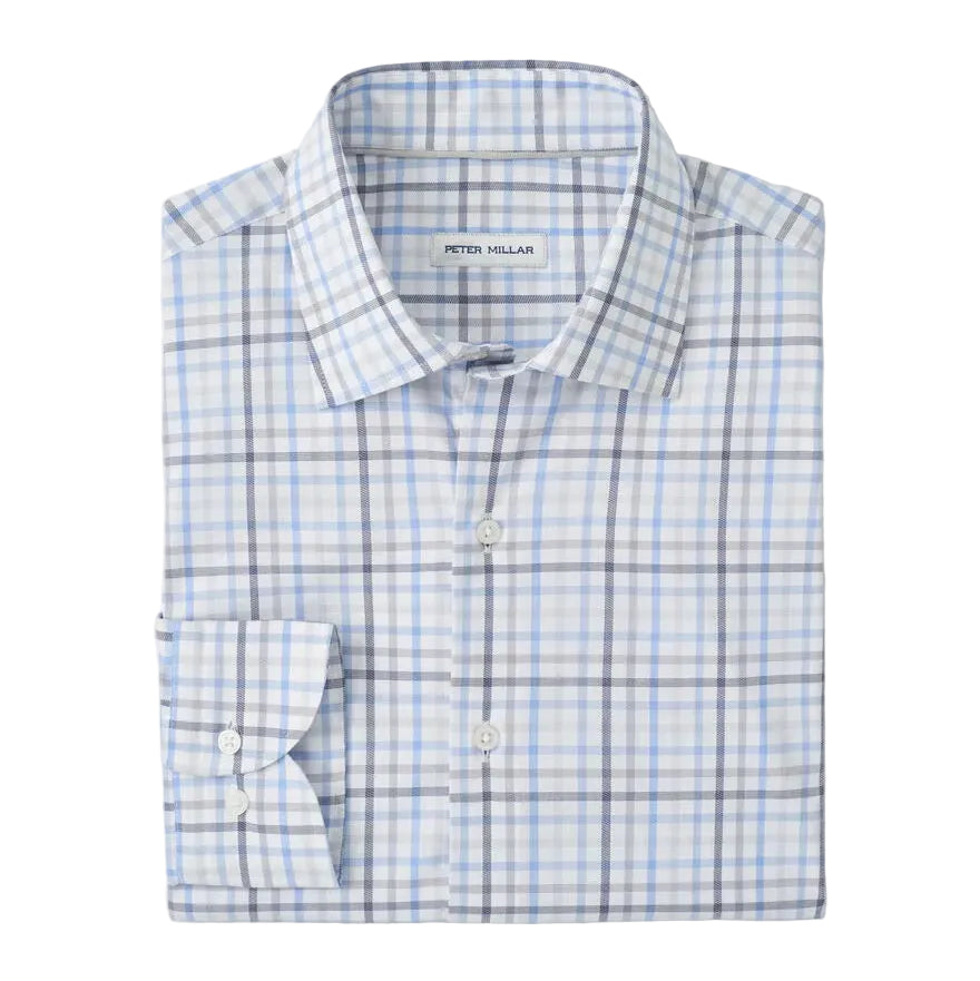 Peter Millar Warren Crown LIte Cotton-Stretch Sport Shirt in Clowdy Blue