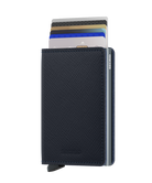 The patented mechanism allows you to slide out your cards with one simple motion, ready for immediate use. The aluminium protects from bending, breaking and unwanted wireless communication.